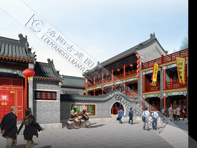 祭城古街位于鄭東新區(qū)盛和街與正光北街之間,南北長(zhǎng)300米,東西寬70米,地上建祭城街小吃城,二層局部三層,仿清代民居建筑,二層設(shè)通廊和跨街騎樓,方便交通,可規(guī)劃約420戶(hù)小吃店,地下一層為商業(yè)區(qū),地下二層為停車(chē)場(chǎng),可??啃⌒蛙?chē)約1000輛。