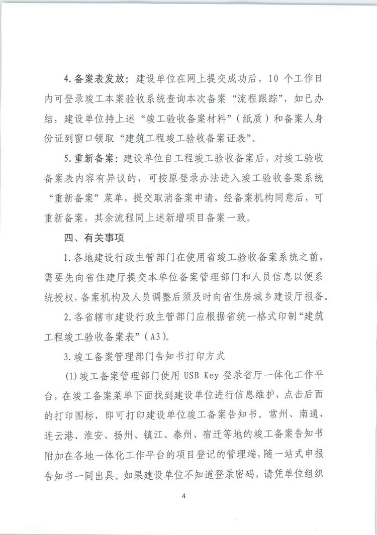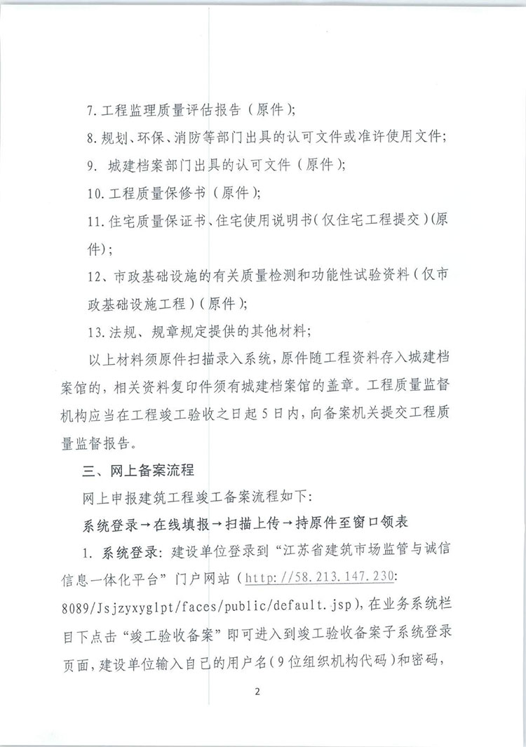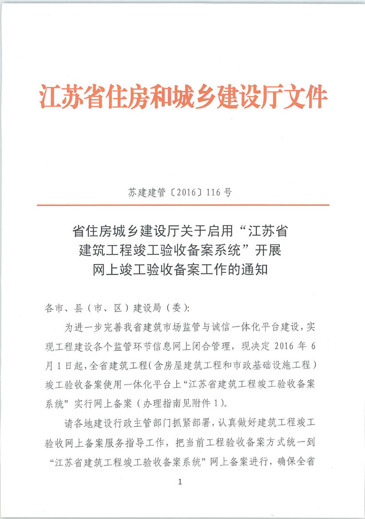 省住房城鄉建設廳關(guān)于啟用“江蘇省建筑工程竣工驗收備案系統”開(kāi)展網(wǎng)上竣工驗收備案工作的通知