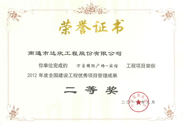 在中國建筑業(yè)協(xié)會(huì )主辦的第八屆全國建設工程優(yōu)秀項目管理成果發(fā)布會(huì )上獲悉,在全國眾多施工企業(yè)項目管理成果中,我公司的《科學(xué)管理攻克難關(guān) 力創(chuàng )國內優(yōu)質(zhì)工程》管理成果脫穎而出,榮獲全國建設工程優(yōu)秀項目管理成果二等獎。