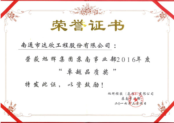 會(huì )上,公布了2016年度蘇南旭輝供應商評選結果,公司有幸被評選為蘇南旭輝“卓越品質(zhì)獎”,這是公司首次獲此殊榮,同時(shí)也是此次春茗會(huì )上中唯一獲此殊榮的建筑企業(yè)。