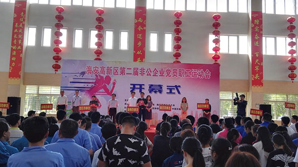 5月18日下午,海安縣高新區黨工委組織的第二屆非公企業(yè)黨員職工趣味運動(dòng)會(huì ),在中國天楹室內籃球館內舉行??h委組織部、縣總工會(huì )、高新區黨工委等領(lǐng)導出席了開(kāi)幕式。高新區40多家企業(yè),500多人參加了本次活動(dòng)。