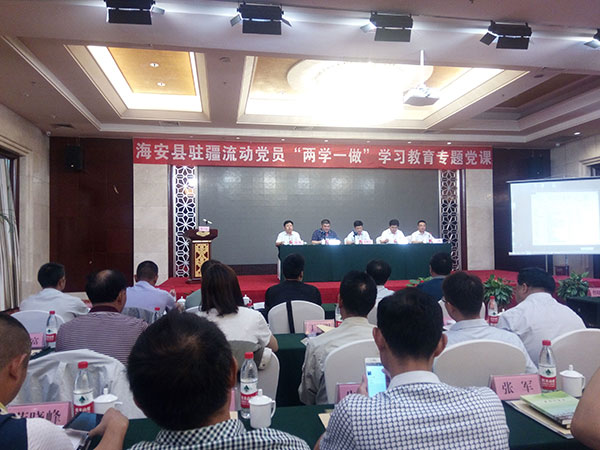 8月20日,海安縣駐疆流動(dòng)黨員“兩學(xué)一做”學(xué)習教育專(zhuān)題黨課在烏魯木齊市舉行,集團在疆黨員和海安縣建筑企業(yè)在疆流動(dòng)黨員、縣外流入我縣建筑企業(yè)在疆的流動(dòng)黨員、新疆江蘇商會(huì )的部分黨員100多人一起參加了會(huì )議。