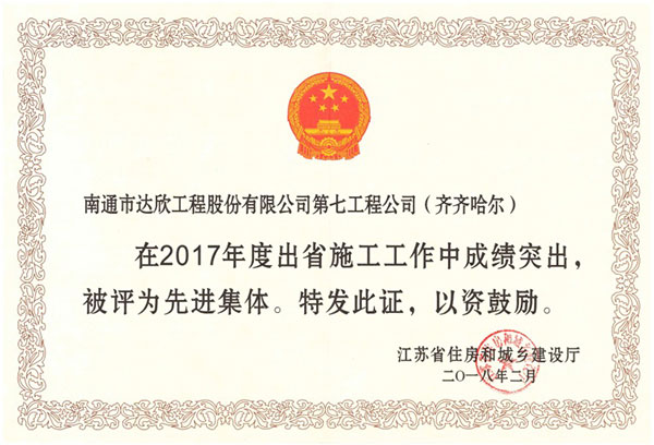 第七工程公司連續五年被評為“江蘇省出省建筑施工先進(jìn)集體”