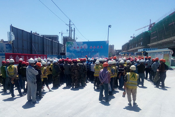 儀式上,君豪輕紡城項目部項目經(jīng)理雷遠明宣讀了《“安全生產(chǎn)月” 、“安全生產(chǎn)萬(wàn)里行”活動(dòng)》的倡議書(shū)和安排部署;生產(chǎn)經(jīng)理盛慶國針對當前安全形勢、施工現場(chǎng)的安全隱患結合事故案例進(jìn)行了教育。最后,工程公司經(jīng)理丁國東就“安全生產(chǎn)月”和“安全生產(chǎn)萬(wàn)里行”活動(dòng)提出具體要求,要求項目部全體人員迅速行動(dòng)起來(lái),積極抓好安全生產(chǎn)的各項工作,堅決杜絕生產(chǎn)安全事故的發(fā)生,確保全年安全生產(chǎn)目標的順利完成。