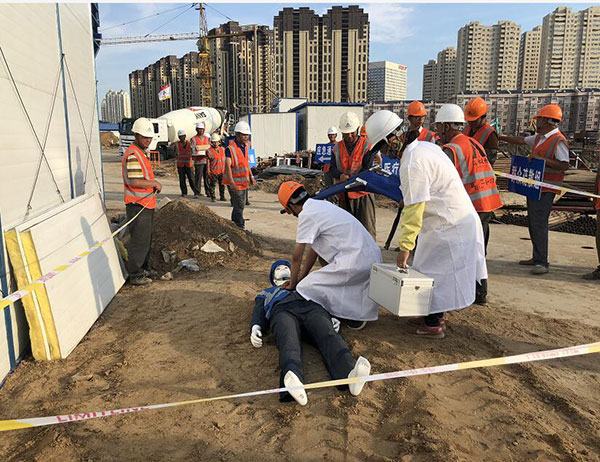 此次應急救援預案演練模擬施工工人從高處墜落?!耙馔狻卑l(fā)生后,現場(chǎng)負責人立即組織人員撤出危險區,并在匯報情況后聽(tīng)從指示在第一時(shí)間啟動(dòng)應急預案。在應急總指揮的指令下,救援小組迅速就位,并有序展開(kāi)警戒護衛、技術(shù)排險、現場(chǎng)搶險、醫療救護等各項救援工作,使險情得到有效控制,隨后,傷員被送往醫院進(jìn)行救治。