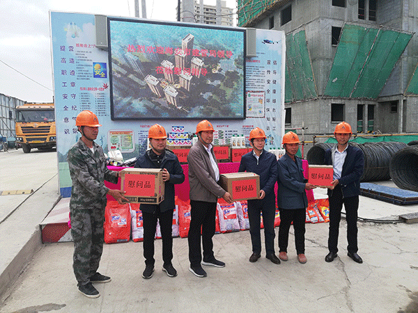 工程公司指導員徐修同對賈局長(cháng)一行的到來(lái)表示熱烈的歡迎。隨后,賈局長(cháng)一行參觀(guān)了項目施工現場(chǎng),徐修同就君豪項目做了簡(jiǎn)單介紹。賈局長(cháng)對施工現場(chǎng)各項工作的有序開(kāi)展表示充分肯定,同時(shí)叮囑項目管理人員不僅要保證工程質(zhì)量、安全和進(jìn)度,還要切實(shí)保障建筑工人的合法權益,關(guān)心建筑工人的工作與生活。最后賈局長(cháng)一行將慰問(wèn)品發(fā)放到工人的手中。