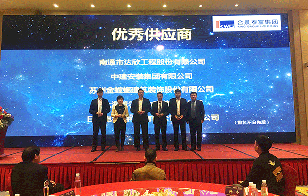 會(huì )上,公布了2018年度優(yōu)秀供應商評選結果,集團榮獲合景泰富集團上海區域公司“優(yōu)秀供應商”,集團黨委書(shū)記劉厚純上臺領(lǐng)獎并作為優(yōu)秀供應商代表發(fā)言。