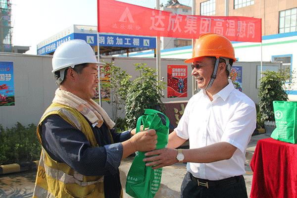 在萬(wàn)豪國際四期4#樓項目上,劉厚純書(shū)記對項目工程質(zhì)量的提升給與了充分肯定,并對項目負責人花忠春提出了高標準高要求把控質(zhì)量的建議。在為職工分發(fā)高溫慰問(wèn)品中,他叮囑項目負責人要加強管理、科學(xué)安排一線(xiàn)職工的作息時(shí)間,做好防暑工作。