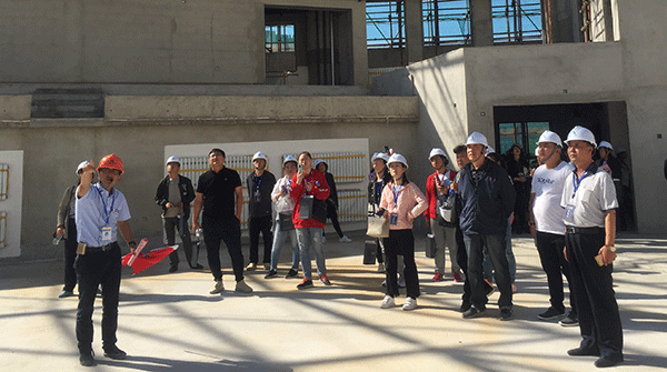 觀(guān)摩活動(dòng)開(kāi)展前,工程公司技術(shù)負責人丁園園就項目綠色施工、質(zhì)量安全標準化施工、BIM技術(shù)運用等方面作了經(jīng)驗介紹。觀(guān)摩中,項目技術(shù)負責人洪陽(yáng)就項目BIM技術(shù)在場(chǎng)地布置模擬、樣板策劃、碰撞檢查與優(yōu)化、可視化交底、凈高分析與控制、日常安全質(zhì)量管理等方面做了詳細講解。