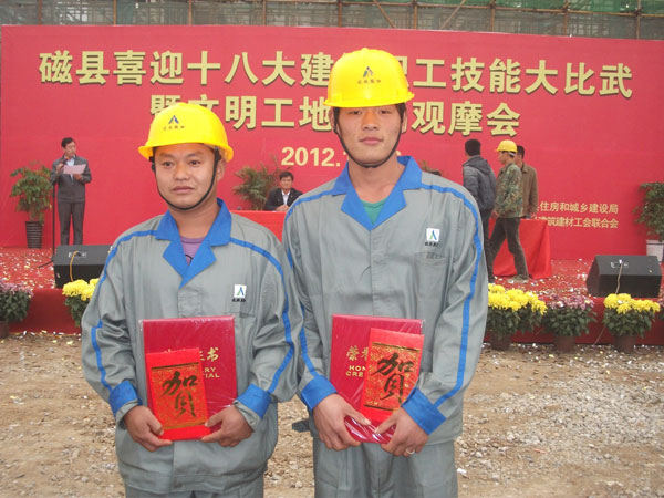 本次職工技能比武共有12家單位參加,通過(guò)激烈角觸,第四工程公司寶盛世紀B區二期項目部選送的鋼筋組一舉奪得小組第一名、焊接組奪得小組第二名,項目部同時(shí)被授予2012年磁縣建筑職工技能比武特別貢獻單位。