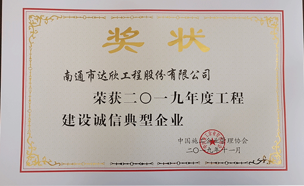 會(huì )議對2019年度“工程建設誠信典型企業(yè)” 進(jìn)行了表彰,公布了2019年度工程建設AAA信用等級企業(yè)名單,推介了企業(yè)誠信建設先進(jìn)經(jīng)驗。達欣集團憑借良好的社會(huì )信譽(yù)和在履行社會(huì )責任方面的突出表現,連續三年通過(guò)“中國工程建設企業(yè)AAA級社會(huì )信用企業(yè)”年度審核,被授予“中國工程建設誠信典型企業(yè)”榮譽(yù)稱(chēng)號。這充分體現了公司始終堅持的“誠實(shí)守信,服務(wù)客戶(hù)”經(jīng)營(yíng)理念和工作實(shí)踐得到社會(huì )各界的廣泛認可和肯定。