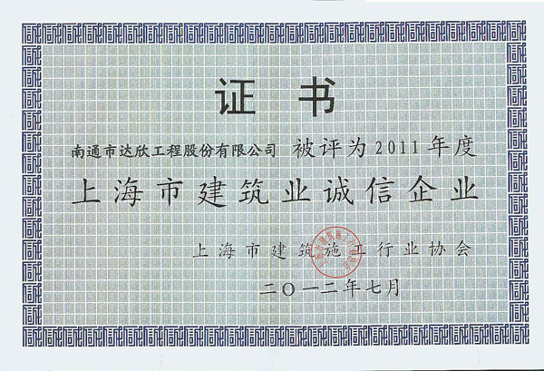 根據《上海市建筑施工企業(yè)誠信建設行業(yè)評價(jià)試行辦法》和《上海市建筑施工企業(yè)綜合實(shí)力排名辦法》、2011年度企業(yè)誠信建設相關(guān)考核、《指標體系及評分標準》等內容,第一工程公司在經(jīng)過(guò)申報、初審、征詢(xún)主管部門(mén)意見(jiàn)、上網(wǎng)公示四個(gè)環(huán)節后,最終由上海市建筑施工企業(yè)誠信建設行業(yè)評價(jià)委員會(huì )審定通過(guò),榮獲2011年度“上海市建筑業(yè)誠信企業(yè)”稱(chēng)號。這是達欣股份自易名以來(lái)連續五年獲此殊榮。此外公司還被評為2011年度“上海市建筑施工企業(yè)綜合實(shí)力進(jìn)步獎”稱(chēng)號,承建的萬(wàn)寶國際廣場(chǎng)項目榮獲2011年度上海市“白玉蘭”優(yōu)質(zhì)工程。