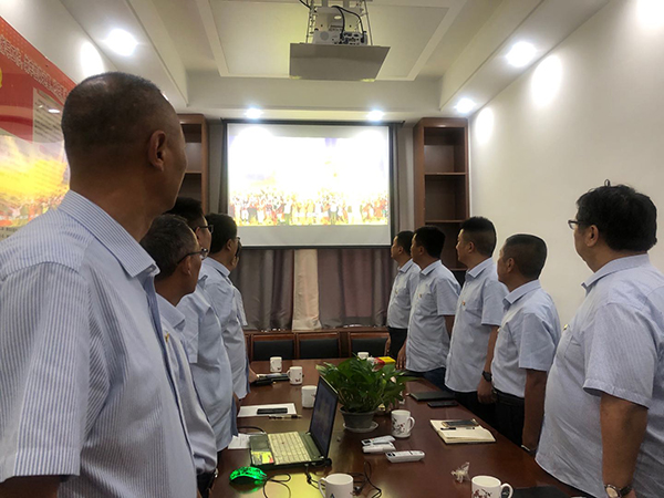 6月30日下午,第三工程公司支部全體黨員在齊唱高亢的國歌聲中開(kāi)始了紀念黨的99華誕系列活動(dòng)。