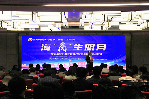 10月29日,海安市駐滬新時(shí)代文明實(shí)踐站成立儀式在上海舉行。江蘇省住建廳駐上海辦事處主任、江蘇省人民政府駐上海辦事處建管處處長(cháng)趙永強,南通市文明辦副主任吳信林;海安市委副書(shū)記、黨校校長(cháng)張浩,海安市委常委、宣傳部長(cháng)王榮貴,海安市人民政府副市長(cháng)戴曉晨,以及上海海安商會(huì )全體會(huì )員,海安駐滬流動(dòng)黨員聯(lián)合黨委全體班子成員,海安駐滬建筑企業(yè)負責人,各區鎮街道政工書(shū)記、宣傳委員、駐滬招商人員等200多人出席活動(dòng)現場(chǎng)。