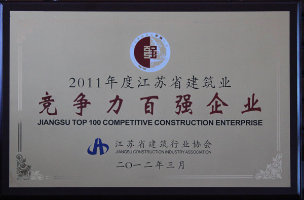 公司榮獲2011年度江蘇省建筑業(yè)競爭力百強企業(yè)