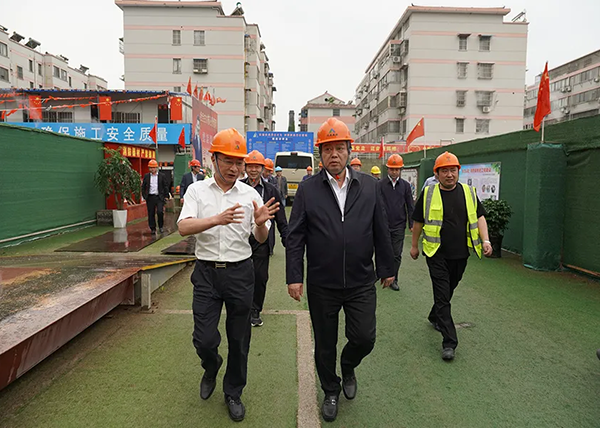 于書(shū)記一行首先來(lái)到實(shí)驗小學(xué)在建大樓前,實(shí)地查看了項目的施工進(jìn)展和周?chē)踩胧┑惹闆r,并與項目經(jīng)理進(jìn)行了詳細的交流。他指出,實(shí)驗小學(xué)改擴建項目是年度重要民生工程,自建設起初就受到大眾的關(guān)注,建設體量較大,施工復雜,而達欣集團在建設中體現出的不畏艱難的精神難能可貴,他希望達欣繼續保持優(yōu)良作風(fēng),再接再厲,保質(zhì)保量完成項目建設任務(wù),確保學(xué)生們在9月份順利在新的大樓里學(xué)習讀書(shū)。