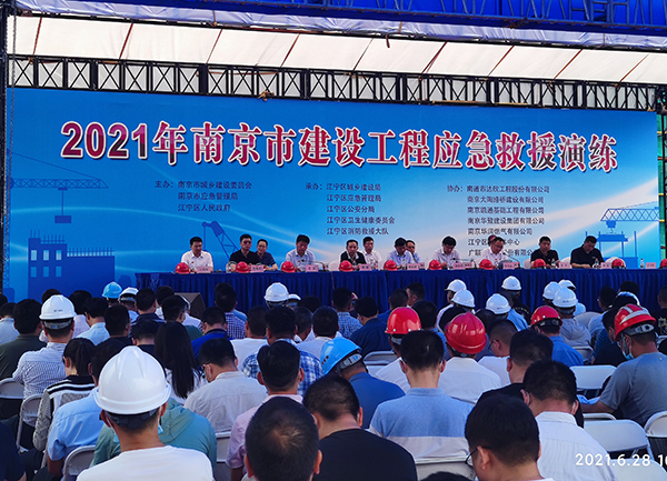 6月28日,由南京市城鄉建設委員會(huì )、南京市應急管理局、江寧區人民政府主辦的“南京市建設工程應急救援演練觀(guān)摩會(huì )”在第二工程公司蘇沃科技園項目部召開(kāi)。南京市建委副書(shū)記朱家祥、南京市安委辦專(zhuān)職副主任韓成頌;江寧區人民政府副區長(cháng)孫兆金、江寧區城鄉建設局局長(cháng)易強等領(lǐng)導,全市施工企業(yè)、監理單位、建設單位負責人及相關(guān)人員等近500余人參加本次活動(dòng)。集團常務(wù)副總經(jīng)理王邦國主席臺就坐。
