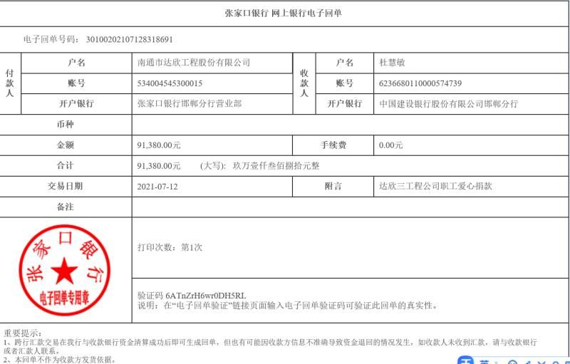 同事們在得知情況后,紛紛伸出援手,獻出一份愛(ài)和情誼,在大家的共同努力下,共籌到善款91380元,并于第一時(shí)間匯到杜慧敏賬戶(hù)里。希望能盡快走出病痛的折磨,早日康復!