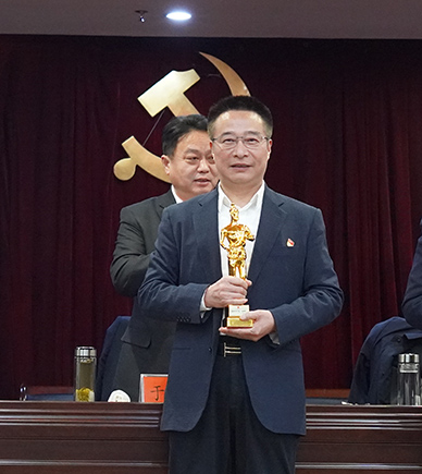 會(huì )上,集團黨委書(shū)記劉厚純上臺接受表彰,領(lǐng)取了黨建“魯班獎”小金人獎杯。