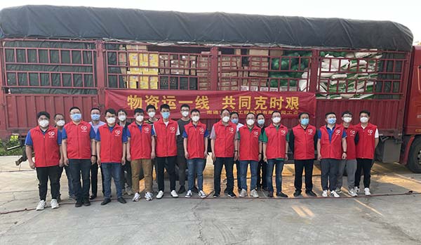 4月11日,在集團副總經(jīng)理、工會(huì )主席溫鶴華的帶領(lǐng)下,達欣集團·魯班傳人志愿服務(wù)隊總隊的志愿者們又再次迅速集結,將20噸的農副產(chǎn)品火速裝車(chē),運往集團第一工程公司松江項目部,支援前方因疫情有難的達欣同胞們。