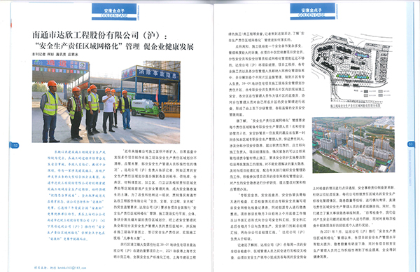 由上海市應急管理局主管、上海市安全生產(chǎn)科學(xué)研究所主辦的2022年第5期《上海安全生產(chǎn)》雜志,刊登了第一工程公司題為“安全生產(chǎn)責任區域網(wǎng)格化  促企業(yè)健康發(fā)展”的安康金點(diǎn)子。