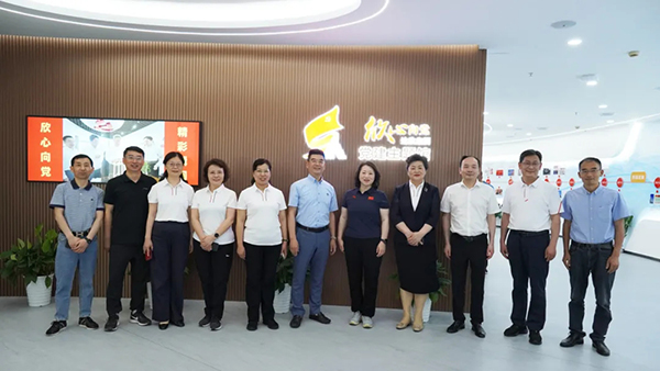 6月19日,江蘇省總工會(huì )黨組成員、副主席張迎春,安徽省總工會(huì )黨組成員、副主席朱穎,南通市人大常委會(huì )副主任、市總工會(huì )主席葛玉琴等長(cháng)三角“三省一市”工會(huì )領(lǐng)導一行,在海安市人大常委會(huì )副主任吉祖榮,市總工會(huì )黨組書(shū)記、主席楊海燕、市建筑業(yè)服務(wù)中心主任、建筑工會(huì )主席曹寅、集團黨委書(shū)記、董事長(cháng)杭小建陪同下,參觀(guān)“欣心向黨”黨建主題館。