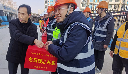 1月13日,南通市總工會(huì )黨組成員、經(jīng)審會(huì )主任周正秋,南通市總工會(huì )權益保障部部長(cháng)趙周恒一行,來(lái)到達欣集團南通R23005地塊項目建設現場(chǎng),開(kāi)展“工會(huì )在身邊 真情暖江海”2025年春節送溫暖活動(dòng),為奮戰在一線(xiàn)的工作人員送上冬日暖心禮包和新春的祝福與慰問(wèn)。