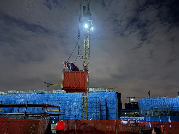 當晚22時(shí)30分,項目施工現場(chǎng)已進(jìn)入夜間停工狀態(tài)。塔吊司機在完成工作后,沿塔身爬梯下行時(shí),突然感到手部無(wú)力,無(wú)法繼續移動(dòng),被困在離地面約30米的爬梯中間,停留在休息平臺上。高空環(huán)境加上夜間視線(xiàn)受限,司機體力逐漸不支,情況十分危急。