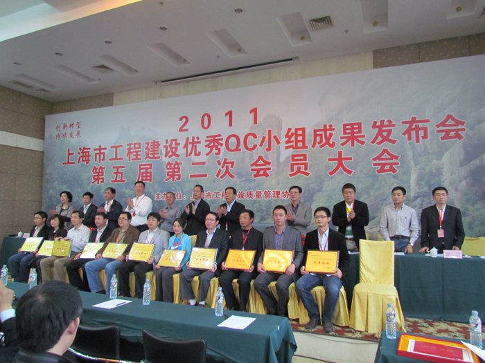 4月17日上海市工程建設質(zhì)量管理協(xié)會(huì )召開(kāi)2011年建設工程優(yōu)秀QC小組活動(dòng)成果發(fā)布會(huì )暨第五屆第二次會(huì )員大會(huì )。第一工程公司選送的 “攻克3m厚大體積砼底板裂縫”、“提高施工現場(chǎng)安全達標優(yōu)良率”、“推行‘四節一環(huán)?!行Ы档凸こ坛杀尽?、“提高建筑幕墻工程的施工質(zhì)量”、“有效控制填充墻內混凝土構造柱裂縫”、“有效控制斜屋面混凝土施工質(zhì)量”、“提高YTONG砂加氣砼砌塊砌筑合格率”、“有效提高模板工程施工質(zhì)量”、“降低明珠城三期工程鋼筋損耗”等九項QC成果均參加本次活動(dòng)的發(fā)布與交流。這次江蘇省在滬企業(yè)參加QC成果發(fā)布、交流共83篇,我公司就占據其中的14%,得到了駐滬辦領(lǐng)導的充分肯定。工程公司也被上海市工程建設質(zhì)量管理協(xié)會(huì )評為2011年上海市建設質(zhì)量管理小組活動(dòng)優(yōu)秀企業(yè)。