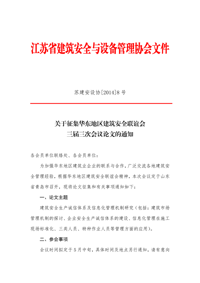 關(guān)于征集華東地區建筑安全聯(lián)誼會(huì )三屆三次會(huì )議論文的通知