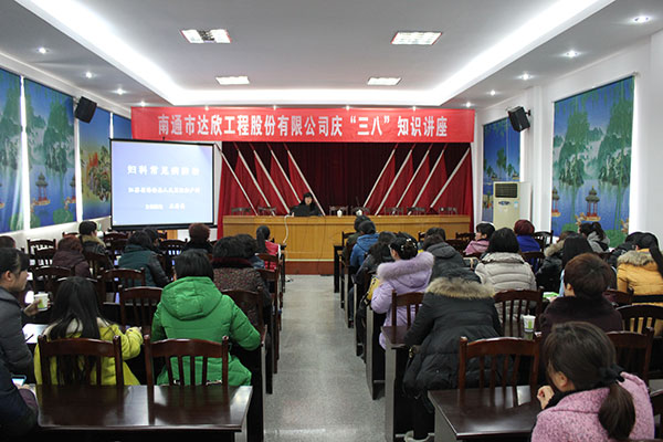 為提升女職工對婦女健康知識的認識,增長(cháng)健康保健常識,公司工會(huì )于3月7日下午邀請了海安縣人民醫院婦產(chǎn)科專(zhuān)家王秀美主任醫師,來(lái)公司四樓會(huì )議室對婦科日常知識進(jìn)行了專(zhuān)題講座。參加聆聽(tīng)知識講座有公司總部全體女員工、工程公司管理崗位的女職工以及公司領(lǐng)導家屬代表等。