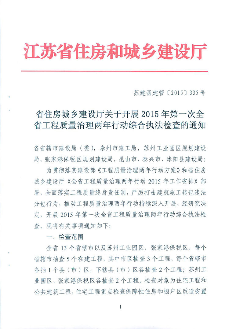 省住房城鄉建設廳關(guān)于開(kāi)展2015年第一次全省工程質(zhì)量治理兩年行動(dòng)綜合執法檢查的通知