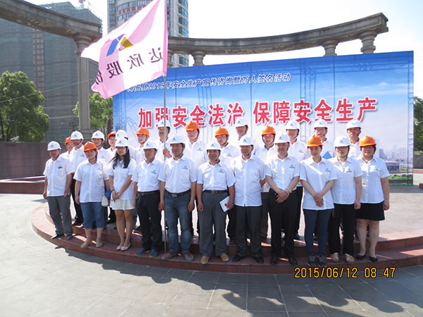 12日,我公司分管安全副總經(jīng)理、工會(huì )負責人、管理者代表、安全設備部主管以及第九工程公司管理人員組成的方陣,在海安中洋廣場(chǎng)參加了縣2015年安全生產(chǎn)宣傳咨詢(xún)暨萬(wàn)人簽名活動(dòng)。