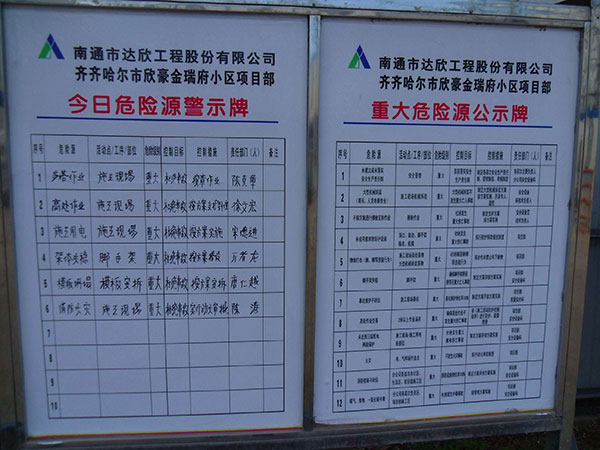 加強宣傳,項目部堅持每日對職工進(jìn)行班組教育和日常班前教育,讓職工每日班前都能明確當日的工作任務(wù)、操作規程和工作環(huán)境,提高個(gè)人的安全防范意識,確保安全生產(chǎn);在每棟樓懸掛“安全生產(chǎn)月”活動(dòng)的宣傳標語(yǔ)。加強警示,在工地大門(mén)口設置了重大危險源公示牌,在每棟樓的入口處公示當日本樓棟號的危險源,時(shí)刻提醒職工注意作業(yè)期間身邊的危險源。加強檢查,認真組織對臨邊、洞口防護、漏電保護裝置進(jìn)行重點(diǎn)檢查,及時(shí)消除安全隱患。同時(shí)對各項目部40歲以上的員工進(jìn)行一次拉網(wǎng)式血壓檢查。對于高血壓的特殊工種,要求其休息調養,待血壓正常后方可繼續上崗。