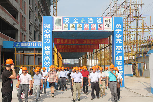 會(huì )前,全體與會(huì )人員還參觀(guān)了被列為本次觀(guān)摩的建筑安全文明標準化施工項目----第一工程公司承建的達欣總部大廈,良好的場(chǎng)容場(chǎng)貌、定型化的防護設施、綠色的環(huán)保措施、人性化的宣傳布置贏(yíng)得了參觀(guān)者的青睞,參觀(guān)者紛紛拍照學(xué)習。觀(guān)摩活動(dòng)的舉行既是政府主管部門(mén)對企業(yè)管理的肯定,同時(shí)對提升“達欣”的社會(huì )形象必將起到良好的推進(jìn)作用。