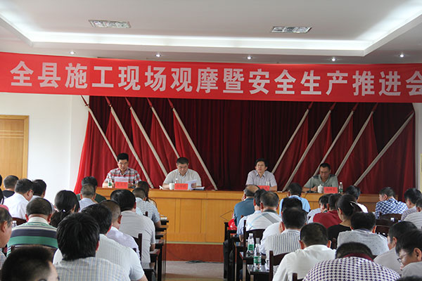 8月13日,全縣施工現場(chǎng)觀(guān)摩及安全生產(chǎn)推進(jìn)會(huì )在我公司舉行,縣建筑工程管理局賈伯根局長(cháng)、徐祥穩書(shū)記、儲祥文副局長(cháng)、各區鎮建管站及全縣40多家企業(yè)的安全負責人和安全科長(cháng)參加活動(dòng)。